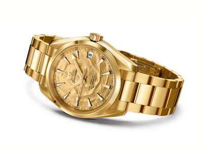 以來(lái)的每部007電影中,歐米茄海馬系列腕表都是詹姆斯?邦德的得力裝備。當(dāng)歐米茄的設(shè)計(jì)師們?yōu)椤?07金手指》電影五十周年設(shè)計(jì)賀禮時(shí),“金”無(wú)疑成為了最佳選擇。
