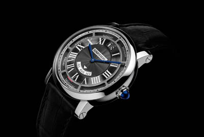 這款年歷腕表對(duì)于多項(xiàng)功能精巧而創(chuàng)新的布局極大地提升了表盤資訊的可讀性,所有資訊顯示一目了然。面盤布局分為三個(gè)層次:大日歷顯示,紅色指針指示著一周的星期,月份視窗,藍(lán)鋼指針繞著表盤上的黑色轉(zhuǎn)印羅馬數(shù)字時(shí)標(biāo)轉(zhuǎn)動(dòng)。Rotonde