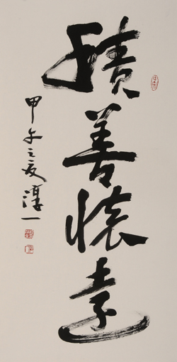 茂全的書法沉穩(wěn)靈動(dòng),結(jié)構(gòu)嚴(yán)謹(jǐn);行筆灑脫流暢,成竹在胸,積四十余年的功夫在里面,可以說是修來的果、悟出的道、品出的禪,個(gè)中三昧,得之不易。溥杰先生為其題詞“味從勤里得!笔拕谙壬Q之為“后起之秀”。大康先生送字三個(gè),叫“池水墨”,涮筆洗硯竟至池水如墨,功夫下到這份上,能無得乎?