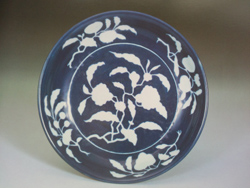 明宣德 藍(lán)地白花折枝花卉紋盤 洛克菲勒基金會(huì)藏 |