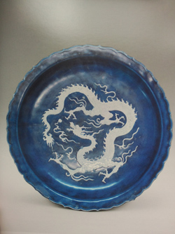 元 霽藍(lán)釉白龍紋菱口盤 直徑46厘米 伊朗國家博物館藏 |