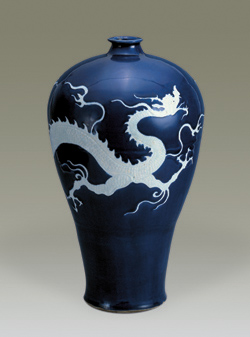 揚(yáng)州博物館鎮(zhèn)館之寶:元 霽藍(lán)釉白龍紋梅瓶 |