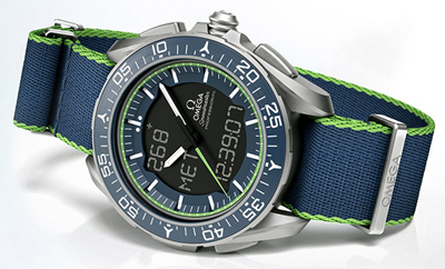 超螢光涂料,而黑綠的中央秒針亦清楚顯眼,且佩戴者可停止該指針,更清楚地讀取液晶螢幕上的資訊。