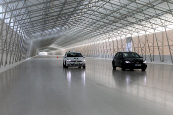 這里有滿山積雪,有結(jié)冰的湖泊,也有人工制冷測試間。這里有世界最大的室內(nèi)冰上直道,可用來測試剎車距離,也有長度令人驚嘆的彎道,可測試車輛在冰雪路面的性能。這里總共有大大小小10個測試區(qū),分別用于不同的測試內(nèi)容,包括冰面抓力、雪路抓力、側(cè)抓力、縱向穩(wěn)定性、山路性能等。