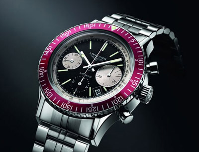 1967)的靈感來(lái)自一枚于1967年出產(chǎn)的潛水員腕表,酒紅色潛水刻度表圈與黑色光滑表盤(pán)和銀色計(jì)時(shí)盤(pán)形成鮮明對(duì)比,并同時(shí)配備測(cè)速刻度。其原型表款現(xiàn)收藏于浪琴表位于索伊米亞(Saint-Imier)的鐘表博物館中。
