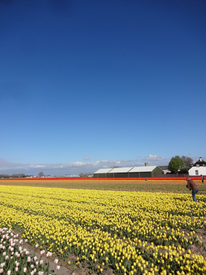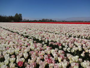 當(dāng)飛機(jī)快要降落到阿姆斯特丹史基浦機(jī)場時(shí),透過舷窗觀望,一望無際的各色郁金香花田,仿佛給大地披上了一片片五顏六色的地毯,在蔚藍(lán)的蒼穹下,呈獻(xiàn)一幅遼闊壯麗、耀眼斑斕的自然之美。五彩的花田,繽紛綻放,荷蘭的春天就是這般美麗。