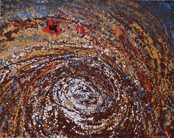 在這場藝術(shù)的大爆炸中,一切都驚人的迭代著,一切都將被深刻地改變。而趙旭的繪畫卻寂然不動(dòng),仿佛一切都停留在大爆炸的第一秒鐘!对茍D》系列是這樣,在印尼海嘯中所激發(fā)出《星云》系列也是這樣,所有的形式都來自于科技觀測(cè)所能獲得的關(guān)于外部宇宙的圖像,但所有的形式都曾經(jīng)真真切切地存在于由文明自身所創(chuàng)造的藝術(shù)史中,趙旭迫使我們?cè)诮裉熘匦驴吹阶陨砭駜?nèi)部與外部宇宙之間相互連接的隱喻。那些翻滾的熱浪,輻射和粒子濃湯,吞噬或創(chuàng)造萬有。它們方生方死,方死方生,毫不以人類的自我意志為轉(zhuǎn)移,但另一方面,它就是人類社會(huì)本身的形象。