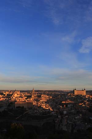 在托萊多,我們住在一個(gè)古城山對(duì)面的古堡中,推開窗正好面對(duì)整個(gè)古城,早起可以看到日出東方,朝陽(yáng)下的和煦的風(fēng)慢慢推聳著峽谷中的霧氣氤氳而出,由濃轉(zhuǎn)淡,消散空中。