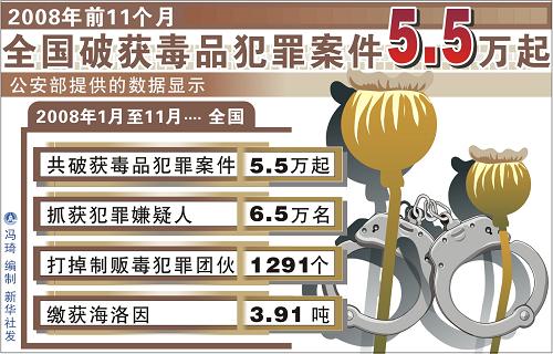 全國(guó)破獲毒品犯罪案件5.5萬(wàn)起[圖表]