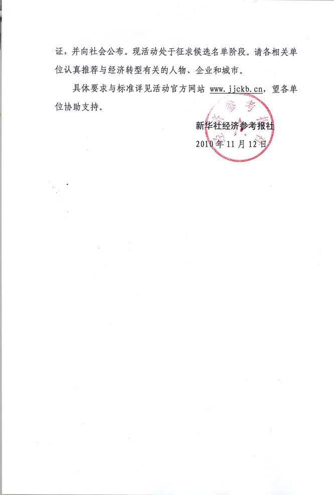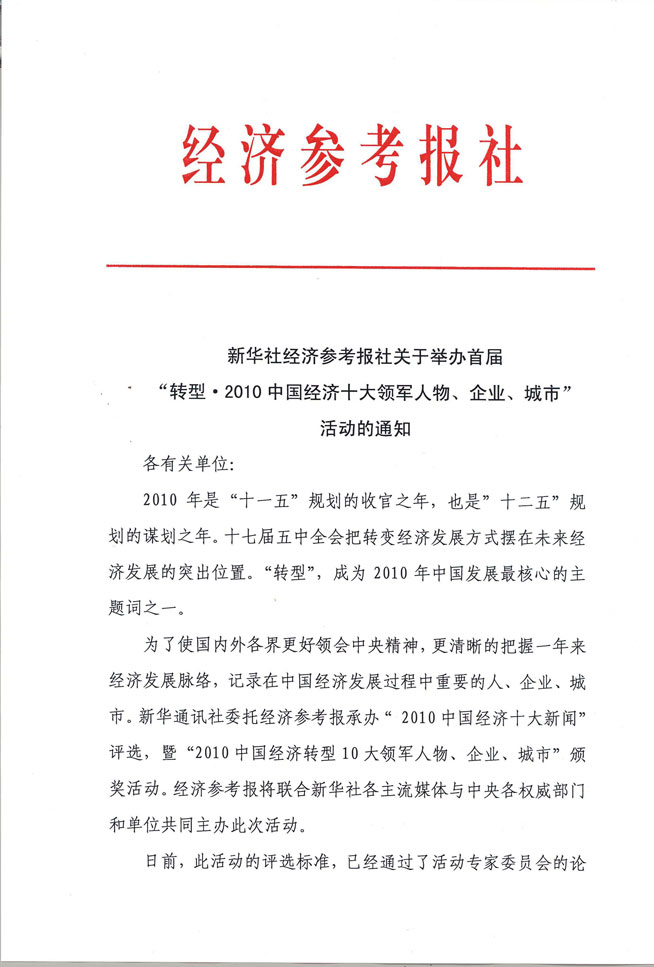 首屆“轉(zhuǎn)型•2010中國(guó)經(jīng)濟(jì)十大領(lǐng)軍人物、企業(yè)、城市”活動(dòng)通知