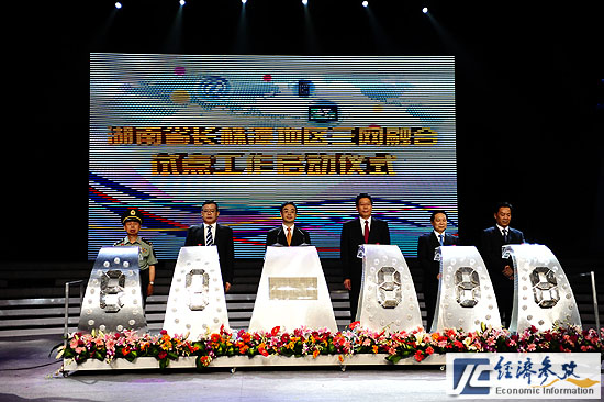 長(zhǎng)株潭城市群三網(wǎng)融合試點(diǎn)工作方案16日在長(zhǎng)沙正式拉開(kāi)大幕。7月1日,國(guó)務(wù)院公布第一批12個(gè)電信網(wǎng)、廣播電視網(wǎng)和互聯(lián)網(wǎng)三網(wǎng)融合國(guó)家試點(diǎn)地區(qū)(城市),長(zhǎng)株潭地區(qū)是試點(diǎn)中的唯一城市群。圖為啟動(dòng)儀式現(xiàn)場(chǎng),湖南省委書(shū)記周強(qiáng)按下啟動(dòng)按鈕。新華社記者 李丹