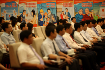 7月4日,《中華人民共和國(guó)社會(huì)保險(xiǎn)法》宣傳周啟動(dòng)。圖為在人民大會(huì)堂舉行的宣傳周啟動(dòng)儀式現(xiàn)場(chǎng)。記者 金立旺