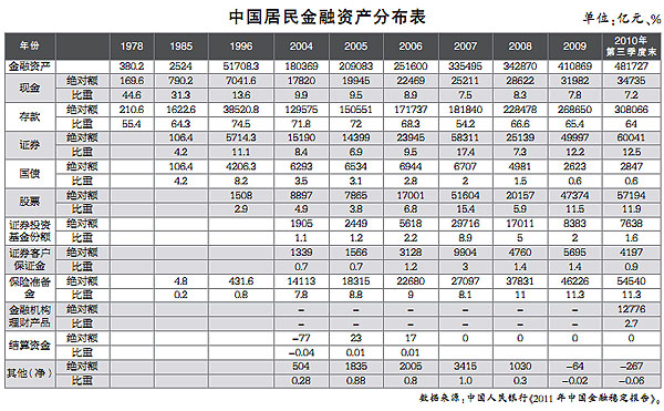 統(tǒng)計(jì)顯示,2010年末之前,在我國居民各項(xiàng)金融資產(chǎn)中,儲蓄存款的實(shí)際收益率是最低的,次低的是國債,股票最高。從我國居民金融資產(chǎn)增長率數(shù)據(jù)來看,收益率對投資的影響是相當(dāng)明顯的,即收益最大的資產(chǎn)增速最高,收益次高的資產(chǎn)增速次高,依此類推。