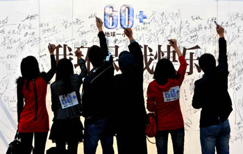 圖為3月31日,江西九江的市民在“地球一小時”活動展板上簽名。新華社發(fā)(胡國林/攝) |