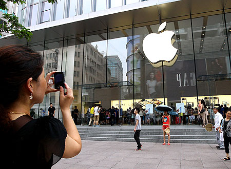我們艷羨蘋果,但蘋果的魅力和威力是建立在雄厚的知識(shí)產(chǎn)權(quán)資產(chǎn)之上的。蘋果公司擁有260件以上的商標(biāo),僅2011年在美國(guó)就申請(qǐng)了676件專利。圖為7月12日,游客在上海南京路上的蘋果專賣店前拍照。記者 陳飛 攝 |