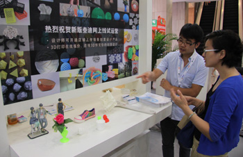 8月15日,在北京舉行的2013年中國互聯(lián)網(wǎng)大會上,上拓3D打印體驗館的工作人員在展廳中向觀眾介紹3D打印的相關(guān)產(chǎn)品與技術(shù)。新華社發(fā)(史陽琨/攝) |