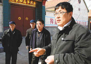 | 王軍(右一)到“村企共建”木李村商議“小康村建設(shè)”事宜。杜劍