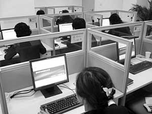 | “虛擬養(yǎng)老院”呼叫中心的接聽員在工作。李俊鋒