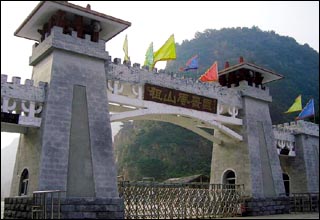 位于祖山景區(qū)北部,風(fēng)光秀美、景色宜人,由絕壁、怪石、奇松、飛瀑組成,是一處以奇險(xiǎn)的山景和名秀的水景為主體特色的景區(qū)。它集祖山五大特色雄、奇、險(xiǎn)、秀、幽于一身,也是祖山五大峽谷之一,是游人不可不去的地方。其著名景點(diǎn)有北龍?zhí)镀俨肌⒒盟、伯牙彈奏、北天門、絕壁生松、曲徑通幽、萬壽山等。 龍?zhí)讹w瀑——祖山是大石河的發(fā)源地之一,溪流、瀑布豐富,有南龍?zhí)丁⒈饼執(zhí)、黃龍?zhí)、黑龍(zhí)、葫蘆潭、姐妹潭、三跳潭、白蛇吐布等瀑布。北龍?zhí)镀俨及l(fā)育在這條幽深的峽谷中,組成峽谷的巖石為燕山運(yùn)動(dòng)所形成的花崗巖;◢弾r節(jié)理發(fā)育,經(jīng)寒凍冰劈和長(zhǎng)期風(fēng)化剝蝕,形成沿陡起直節(jié)里面的峭壁懸崖,溪流到此而成瀑布,飛落而下,轟然作響,如蛟龍躍入深潭,十分壯觀,頗有“飛流之下三千尺,疑是銀河落九天”的韻致。 幻松——祖山幻松也叫六棵松,按照不同的方向看過去,六棵、五棵、四棵、三棵……大自然的數(shù)字游戲堪稱世界一絕。 伯牙彈琴——大家對(duì)高山流水的故事可能都非常熟悉。據(jù)載,俞伯牙是戰(zhàn)國(guó)時(shí)期的一位琴師,他彈奏的曲子沒有人能聽得懂,為此他感到非常悲哀,于是四處游蕩,尋找知音。一天,他途經(jīng)祖山忽見這里美景,頓生彈奏之情,鐘子期砍柴歸來,耳聞琴韻便駐足聆聽,那悠揚(yáng)的琴聲使子期隨口道“洋洋忽若流水兮”,伯牙聽到終于有人能聽懂他彈奏的曲子了非常驚喜,隨即又狂奏一曲,子期又道“巍巍忽若高山兮”。伯牙聽后為自己終于能尋到知音而激動(dòng)萬分,便與子期結(jié)為知音。從此子期每次砍柴伯牙都撫琴相接,彈琴相送。若干年后,子期因病亡故,幾年以后伯牙攜琴來探望子期,途中遇一老夫,伯牙便問:“老人家可相識(shí)子期?”老人沒有答言,卻落下了兩行淚水。伯牙感到奇怪,繼續(xù)追問才知道老者便是子期的父親,并得知子期已經(jīng)去世,伯牙悲痛萬分,并求老者帶他到子期墓前跪拜,最后彈奏了一曲。子期已故,伯牙失去知音,他知道世上再?zèng)]有人能聽懂他的彈奏了,便告別老者又回到他經(jīng)常為子期彈奏的地方,摔琴于崖下,以謝子期。這就是伯牙摔琴謝子期的故事,琴弦變成六棵松,琴韻化為這谷間飛瀑。 北天門——原稱天橋山。北天門口屹立著一棵迎客松。我們都知道,黃山的迎客松儀態(tài)萬方,以她大家閨秀的典雅風(fēng)范招引無數(shù)的四海游客。而我們祖山的迎客松,卻是“養(yǎng)在深閨人未識(shí)”的小家碧玉。她就像一位不施粉黛、嬌羞滿面的村姑,站在北天門口,代表?yè)凑\(chéng)、樸實(shí)的祖山人歡迎各位的到來。迎客松旁邊的突兀的石柱就是無字碑,千百年來風(fēng)吹雨打,飽經(jīng)滄桑,但它仍初衷不改,操守如一,默默鏤刻著人間的是非功過,有位詩(shī)人游過此景寫道“祖山雄奇未著名,山花野草喚文宗,高碑無字云間立,留與詩(shī)家寫不平! 絕壁生松——這塊平坦的絕壁上生長(zhǎng)著許多松樹,有的像孔雀開屏,有的似蛟龍出海,這就是祖山奇景絕壁生松,最妙的是那棵似枯非枯的樹干,據(jù)說只在盛夏時(shí)才會(huì)生出一層新綠,因此得一雅號(hào):枯木逢春。這些松樹千姿百態(tài),妙趣橫生,在無立足之地立足,真可謂絕處逢生。在整個(gè)祖山的美景中,絕壁生松素有“錦上添花”的美譽(yù)。 曲徑通幽——又名情人谷。谷深林密、情人幽會(huì)、吮花香、酌清泉、聽高山流水、擁草木纏綿,是享受幸福人生的佳境。在氣勢(shì)磅礴的瀑布旁,千余級(jí)陡峭棧道直通澗底,可謂“枯藤老樹不見天日,密道探奇方見神秘幽谷” 萬壽山——山上有許多巖石特別像老。壽星,傳說這些老壽星都是來尋找萬年靈芝,以求長(zhǎng)生不老的。山頂上一塊大石柱上面有一株樹齡逾百年的松樹酷似萬年靈芝,它破石而出,抱崖而立,恰如畫龍點(diǎn)睛的神來之筆。