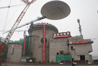 秦山二擴(kuò)3號反應(yīng)堆廠房穹頂成功吊裝。二三公司承擔(dān)3號機(jī)組核島安裝任務(wù)。 |