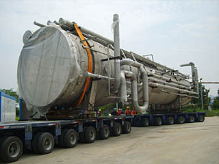 | 二三公司按照模塊化施工制作的大型設(shè)備。 | 中國的核電事業(yè)匯聚了共和國的幾代精英:雙鬢如霜的創(chuàng)業(yè)元老,縱馬南北的核工業(yè)建設(shè)中堅(jiān),壯志凌云的新一代英才。如今,隨著“十一五”規(guī)劃的發(fā)布與實(shí)施,我國全面步入核電發(fā)展新時期。半個世紀(jì)的奮斗終于向世界證明:起步于艱難時期的中國核工業(yè),已成功邁向一個新時代。這既是對20世紀(jì)的告別,也是中國核工業(yè)奮起追趕世界一流目標(biāo)的一種開始。風(fēng)雨同舟、前赴后繼、頑強(qiáng)拼搏、改革創(chuàng)新,在中國核工業(yè)的發(fā)展進(jìn)程中,中國核工業(yè)建設(shè)集團(tuán)公司下屬的中國核工業(yè)第二三建設(shè)公司(以下簡稱“二三公司”)激情演繹了“創(chuàng)新發(fā)展、勇當(dāng)重任”的深刻內(nèi)涵,其間創(chuàng)業(yè)艱辛、奮斗曲折。無數(shù)為核電事業(yè)大發(fā)展付出青春和熱血的創(chuàng)業(yè)者,鑄就了中國核電核島自主建設(shè)安裝的輝煌,實(shí)現(xiàn)著產(chǎn)業(yè)報國的理想,贏得了國際同行的高度尊重。