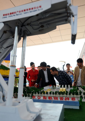 山西省第八屆太原煤炭工業(yè)技術(shù)裝備展覽會22日在山西省展覽館舉行,展出了近300個廠家的1000多種煤炭專業(yè)技術(shù)產(chǎn)品,涉及煤炭采掘設(shè)備、安全監(jiān)控系統(tǒng)、勘探設(shè)備等。圖為參觀者在展會上觀看一個礦山模型。