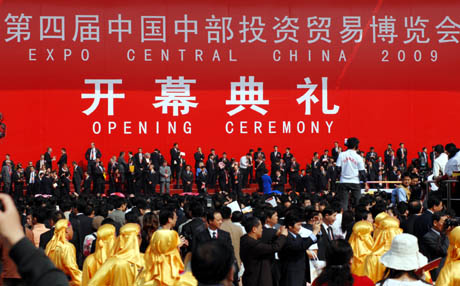 4月26日,在安徽合肥國際會展中心開幕。此次為期3天的博覽會以“創(chuàng)新、合作、共贏、崛起”為主題,將舉辦萬商西進(jìn)高峰論壇、中部六省與跨國公司午餐會、服務(wù)外包政策研討會、搞活流通擴(kuò)大消費(fèi)政策說明會等活動。新華社發(fā)