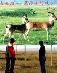 在青海湖畔的環(huán)湖公路邊,有一塊推介青海湖景區(qū)的巨型形象廣告牌,廣告牌在顯著位置錯誤地介紹青海湖居然是“藏羚羊的故鄉(xiāng)”,而配圖卻是兩只中華對角羚(學(xué)名普氏原羚),專業(yè)人士認(rèn)為這是“驢頭不對馬嘴”的誤導(dǎo)廣告,出現(xiàn)在著名旅游景區(qū)讓人貽笑大方。本報記者:侯德強(qiáng)