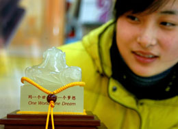由北京奧組委授權的“奧運御璽·中國印”日前亮相江蘇連云港。“奧運御璽”以新疆白玉為主材,主體造型以蟠龍為印紐,正面雕刻有2008年奧運會會徽圖案。