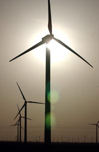 風(fēng)能資源豐富的甘肅省酒泉市將啟動(dòng)千萬千瓦級風(fēng)電基地建設(shè)項(xiàng)目。甘肅省根據(jù)國家風(fēng)電發(fā)展規(guī)劃,提出“建設(shè)河西風(fēng)電走廊,打造西部陸上三峽”的戰(zhàn)略目標(biāo)。按照規(guī)劃,酒泉風(fēng)電基地建設(shè)選擇了風(fēng)電建設(shè)條件相對較好的8個(gè)風(fēng)電場,規(guī)劃總裝機(jī)容量3565萬千瓦。到2010年底,酒泉風(fēng)電基地累計(jì)裝機(jī)要達(dá)到341萬千瓦,到2020年累計(jì)裝機(jī)容量達(dá)到1065萬千瓦。 |