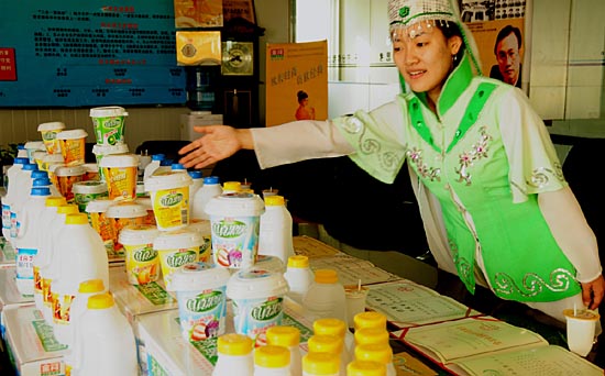 全國(guó)少數(shù)民族特需用品定點(diǎn)生產(chǎn)企業(yè)銀川市金河乳業(yè)有限公司的工作人員正在介紹其系列清真乳品。 近年來(lái),寧夏銀川市清真產(chǎn)業(yè)迅速發(fā)展。2007年,銀川市清真食品、保健品和穆斯林用品產(chǎn)業(yè)實(shí)行營(yíng)業(yè)收入29.83億元,比上年增長(zhǎng)28.9%。 | |