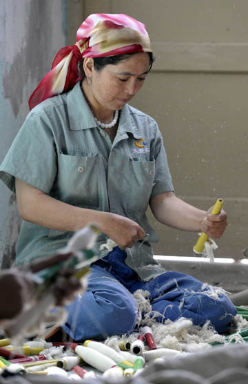 位于新疆石河子國(guó)家級(jí)經(jīng)濟(jì)技術(shù)開發(fā)區(qū)的天盛實(shí)業(yè)有限公司因地制宜,利用靠近棉花產(chǎn)地的優(yōu)勢(shì)積極發(fā)展棉紡織業(yè),現(xiàn)已形成年產(chǎn)50萬(wàn)錠的生產(chǎn)規(guī)模,同時(shí)從和田、喀什、吐魯番等地大量招收少數(shù)民族員工,解決了他們的就業(yè)問(wèn)題。目前公司有2200多名維吾爾族、回族、柯爾克孜族、蒙古族、哈薩克族等少數(shù)民族員工,占員工總數(shù)的2/3。 |