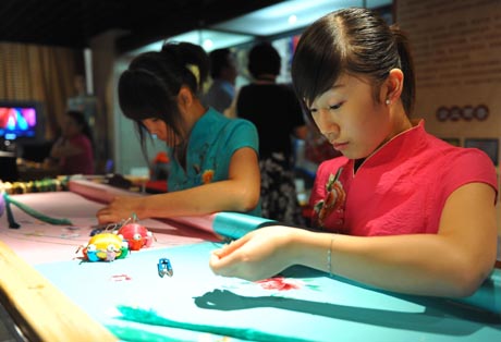 8月16日,北京劇裝廠的工作人員在現(xiàn)場展示“燕京八絕”之一的京繡。當(dāng)日,第二屆中華民族藝術(shù)珍品文化節(jié)在位于北京崇文區(qū)的中華民族藝術(shù)珍品館開幕。據(jù)介紹,為期一月有余的此次文化節(jié)包括藏傳佛教藝術(shù)珍品展、海外遺珍———海峽兩岸紅山玉文物瑰寶展、“燕京八絕”傳統(tǒng)技藝展等七個主題展以及古玉鑒定講座、藝術(shù)珍品拍賣等多項(xiàng)活動,將系統(tǒng)地展示反映中國古代、近現(xiàn)代和當(dāng)代民族藝術(shù)的珍品。 |