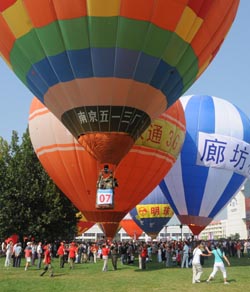 8月30日,第三屆中國(guó)(廊坊)國(guó)際熱氣球節(jié)在廊坊國(guó)際會(huì)展中心開幕。本屆熱氣球節(jié)以“休閑廊坊、放飛夢(mèng)想”為主題,共有來自全國(guó)各地的20支熱氣球隊(duì)參加,期間還有氣球噴火、亮球、高空跳傘、動(dòng)力傘飛行表演以及熱氣球圖片展等活動(dòng)。