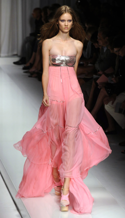著名設(shè)計(jì)師迪安·馮菲爾斯滕貝格現(xiàn)任美國(guó)時(shí)裝設(shè)計(jì)師協(xié)會(huì)主席,她帶來(lái)了用珍珠和翡翠鑲邊的束胸上衣,以及用色豐富、充滿波西米亞風(fēng)情的長(zhǎng)裙。整場(chǎng)時(shí)裝秀融合了吉卜賽文化、印度文化和伊斯蘭文化,宛如沙漠里的夏季。