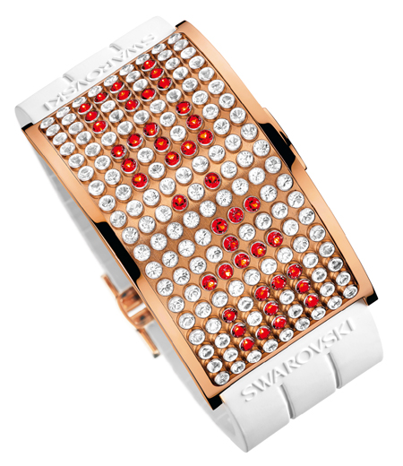 ▲施華洛世奇以AvantTime概念為靈感的首款限量版D:Light手表綴以171顆施華洛世奇切割仿水晶。該款手表看似如高貴優(yōu)雅的手鏈,卻內藏施華洛世奇特別設計的機芯。只要輕按黑色搪瓷襯底,綴以金屬天鵝標志的橢圓形按掣,仿水晶就會閃動發(fā)光,并以和諧悅目的橙光顯示時間,在片刻過后如變戲法般消失。