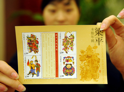 我國第8套年畫系列郵票《梁平木版年畫》特種郵票將于2010年2月6日正式發(fā)行,中國郵政集團公司、重慶市政府將在重慶梁平縣舉行郵票首發(fā)式。 據(jù)介紹,《梁平木版年畫》特種郵票1套4枚,每枚面值1.20元,共計面值4.80元;小全張1枚,售價7.20元。該套郵票選擇了梁平木版年畫中驅(qū)邪納福、喜慶吉祥、戲曲故事題材的代表,其中,郵票中的“門神”圖案頭戴纓金翅盔,背插方形帥旗,身披魚鱗金甲,手持元寶、火珠、翠葉金錢,增添了金玉滿門財富到家的祥瑞氣氛,是梁平年畫的精品。 據(jù)悉,郵政部門自2003年開始,陸續(xù)發(fā)行了楊柳青、桃花塢、楊家埠、武強、綿竹、朱仙鎮(zhèn)和漳州等7套年畫系列郵票,即將發(fā)行的《梁平木版年畫》將成為我國第8套年畫系列郵票。 |