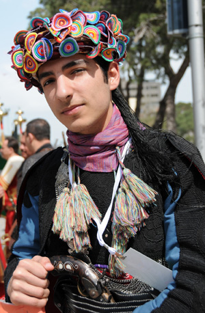 圖為3月28日在愛琴海地區(qū)的馬尼薩市,身穿14世紀(jì)奧斯曼帝國盛裝的土耳其人上街游行歡慶。在游行結(jié)束后,僅一個小時就向市民分發(fā)了4噸梅斯?fàn)柼恰?/P> |
