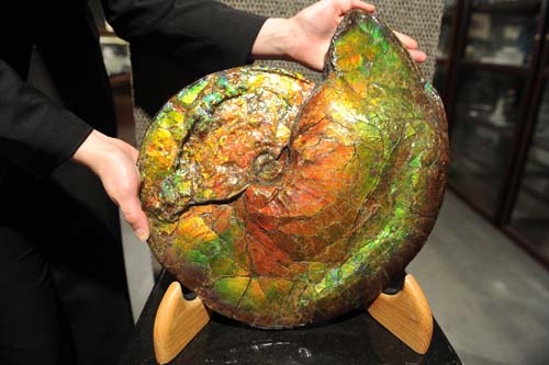 日前,一塊即將拍賣的菊石(已滅絕頭足動(dòng)物菊石的化石介殼)在美國洛杉磯展出。 美國一家拍賣公司將于5月27日舉行名為“自然歷史”的拍賣會(huì),屆時(shí)將拍賣古生物化石、隕石等珍貴藏品。