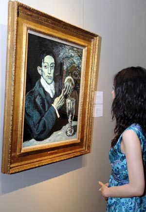 6月23日,倫敦佳士得拍賣行將在倫敦舉行“印象派及現(xiàn)代藝術(shù)”拍賣會,拍賣一批畢加索、梵高等印象派舉世聞名的巨作。圖為畢加索1903年油畫作品《喝苦艾酒的人》在香港預(yù)展,估價3000萬-4000萬英鎊。