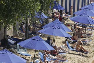 在夏日來到巴黎的塞納河畔,眼前是白色的細(xì)沙、一排排蔚藍(lán)的遮陽篷和躺椅、郁郁蔥蔥的棕櫚樹,這里儼然已經(jīng)成為一片真正的陽光沙灘。 這是巴黎市政府為供市民休閑娛樂特別推出的“巴黎沙灘”活動(dòng)。從2002年開始,巴黎市每年都會(huì)在盛夏來臨時(shí)在市區(qū)設(shè)置沙灘休閑娛樂設(shè)施,供大眾免費(fèi)享用。在今年度假潮到來之際,第九屆“巴黎沙灘”也如期而至,為巴黎市民和各國游客提供了一個(gè)休閑度假、享受陽光的好去處。 據(jù)介紹,“巴黎沙灘”活動(dòng)現(xiàn)場(chǎng)主要位于巴黎市政廳附近的塞納河畔以及巴黎19區(qū)一處水道旁,分別綿延2.8公里和1.5公里。主辦方在短短四天五夜間將運(yùn)來的1350噸細(xì)沙、250處日光浴、數(shù)百張折疊躺椅、聚餐桌椅、熱帶樹木等安置在河畔。不僅餐飲、娛樂、淋浴等項(xiàng)目一應(yīng)俱全,甚至還安裝了220平方米大的游泳池供游客消暑嬉戲。 在這里,人們可以遠(yuǎn)離喧囂、靜聽塞納的江聲,躺在細(xì)沙上度過休閑的時(shí)光,可以在沙灘上買到冰激凌、品到香濃的咖啡。主辦方還開設(shè)了圖書館為沙灘上的人提供書籍和雜志,人們可以邊“美黑”邊閱讀。另外還有水上健身課程、兒童科學(xué)小實(shí)驗(yàn)等項(xiàng)目供人們休閑娛樂。 一對(duì)在巴黎生活的德國老夫婦告訴記者,他們很喜歡“巴黎沙灘”。“去年我們就參加過,今年我們從開幕第一天就來了,還帶上野餐的食物在陽傘下品嘗。這非常有趣,太舒服了!” 一個(gè)可愛的法國小女孩很開心地對(duì)記者講述了她和爸爸、弟弟從早上來到“巴黎沙灘”的游玩經(jīng)歷:“雖然玩滾球游戲總是爸爸贏,弟弟喜歡潑沙子,但是我還是很喜歡到這里嬉戲、曬太陽! 活動(dòng)負(fù)責(zé)人DamienMasset接受記者采訪時(shí)表示,他的工作團(tuán)隊(duì)負(fù)責(zé)整個(gè)活動(dòng)的每一個(gè)細(xì)節(jié),包括沙子、日光浴、樹木、餐飲以及音樂、舞蹈等文化活動(dòng)都完美地運(yùn)行;顒(dòng)最初是為夏日還沒到南部海灘度假的巴黎人而設(shè)的,在這里他們也能愜意享受到陽光和沙灘。而漸漸該活動(dòng)成了巴黎夏日一道獨(dú)特的風(fēng)景線,加入了許多外國游客夏天巴黎游的必經(jīng)線路。 今年的“巴黎沙灘”耗資220萬歐元,除了大量物資投入外,主辦方派出了650名救生員,自開幕之日起至8月20日結(jié)束全程保護(hù)游客的安全。 |