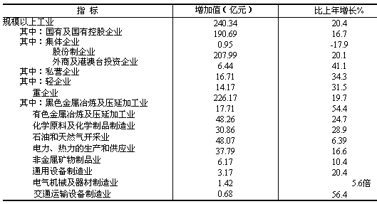 經國家統(tǒng)計局核準,全省生產總值641.05億元,按可比價格計算,比上年增長12.2%;人均生產總值11753元,按可比價格計算,比上年增長11.3%。在產業(yè)結構調整中,全年第一產業(yè)完成增加值69.60億元,比上年增長3.5%;第二產業(yè)完成增加值330.82億元,比上年增長15.7%;第三產業(yè)完成增加值240.63億元,比上年增長10.5%。第一、第二和第三產業(yè)增加值占生產總值的比重分別由“十五”末2005年的12.0:48.7:39.3轉變?yōu)?0.9:51.6:37.5;第一、第二和第三產業(yè)對GDP的貢獻率分別為3.5%、62.7%、33.8%。