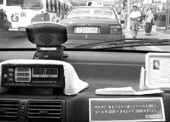2007年8月1日,鄭州市西大街。鄭州市出租車停止?fàn)I運(yùn)第三天早晨,一些出租車開始零星上街載客。但街頭仍然可見不掛牌照的出租車,另一些出租車的前擋風(fēng)玻璃上則掛著“今日休息”的牌子。 從7月30日上午6時(shí)30分起,鄭州市10000余輛出租車開始集體停止運(yùn)營(yíng),市內(nèi)出租交通陷入癱瘓狀態(tài)。