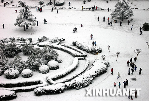 1月26日,南京市民在一公園內(nèi)賞雪游玩。新華社記者 韓瑜慶 攝