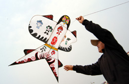 一場(chǎng)“迎奧運(yùn)”風(fēng)箏比賽日前在濰坊市寒亭區(qū)體育場(chǎng)舉行,28支風(fēng)箏放飛代表隊(duì)參加了比賽。參加比賽的風(fēng)箏多以“福娃”“五環(huán)”“巨龍”等與北京奧運(yùn)會(huì)有關(guān)的內(nèi)容為題材。