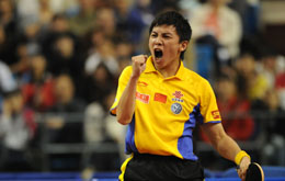 5月3日,陳 經(jīng)在山西省太原市濱河體育中心舉行的中國乒乓球超級明星熱身賽男單比賽中以3比1戰(zhàn)勝馬琳。這是中國乒乓球隊備戰(zhàn)北京奧運會而進行的“以賽代練”。