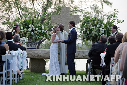 這張5月11日由白宮發(fā)布的照片顯示的是,5月10日,新郎黑格與新娘詹娜在婚禮上。10日傍晚,布什總統(tǒng)的愛女詹娜在美國得克薩斯州克勞福德農(nóng)場舉行露天婚禮,與交往已久的男友黑格共結(jié)連理。 新華社/法新