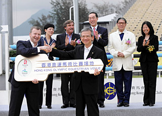 香港賽馬會26日在此間舉行儀式,將位于沙田的北京奧運(yùn)馬術(shù)比賽主賽場移交給北京奧運(yùn)馬術(shù)比賽承辦機(jī)構(gòu)——第29屆奧運(yùn)會馬術(shù)比賽(香港)有限公司(簡稱奧運(yùn)馬術(shù)公司)。 在儀式上,香港賽馬會行政總裁應(yīng)家柏將一把金鑰匙贈(zèng)送給奧運(yùn)馬術(shù)公司總裁林煥光,象征場地正式移交。 香港特區(qū)政府政務(wù)司司長唐英年致辭時(shí)表示,奧運(yùn)馬術(shù)沙田場館正式落成并移交,是香港籌備北京奧運(yùn)和殘奧馬術(shù)比賽的一個(gè)重要里程碑。他說,馬術(shù)比賽場館經(jīng)過精心設(shè)計(jì),處處體現(xiàn)“以馬為本”,在馬房環(huán)境、馬匹訓(xùn)練、馬匹運(yùn)輸以及化驗(yàn)、廢物循環(huán)再用、應(yīng)付惡劣天氣等方面都別出心裁,創(chuàng)造了多項(xiàng)世界紀(jì)錄。整個(gè)場館和相關(guān)設(shè)施都得到國際奧委會、國際馬聯(lián)、北京奧組委和專家的高度評價(jià)。 唐英年表示,5月2日北京奧運(yùn)火炬在港傳遞圓滿舉行,充分顯示出香港社會對奧林匹克精神的認(rèn)同以及對奧林匹克運(yùn)動(dòng)的支持,相信香港一定可以承辦好有特色、高水平的奧運(yùn)和殘奧馬術(shù)賽事。 位于香港沙田的北京奧運(yùn)馬術(shù)比賽主賽場可容納1.8萬名觀眾,賽場采用全天候沙面,排水量達(dá)每小時(shí)100毫米。賽場周圍建有6星級空調(diào)奧運(yùn)馬房、馬匹診所以及13個(gè)練習(xí)場,其中包括世界首個(gè)空調(diào)室內(nèi)馬術(shù)練習(xí)場。比賽場地還設(shè)有4個(gè)馬匹降溫站,備有強(qiáng)力噴霧風(fēng)扇和大量冰水,供馬匹在訓(xùn)練和比賽后消暑降溫。大部分奧運(yùn)馬術(shù)比賽將于8月9日至21日在沙田賽場舉行。 |
