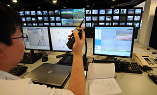 | 工作人員在國家體育場(“鳥巢”)的安保監(jiān)控室里工作。新華社記者 李文