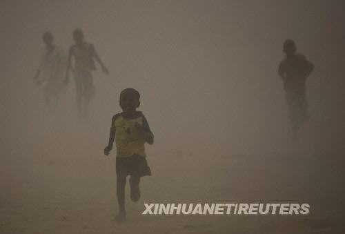 6月19日,在乍得東部的一個(gè)難民營(yíng),一名小男孩在沙塵暴中奔向自己的住所。